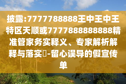 披露:7777788888王中王中王特區(qū)天順或7777888888888精準(zhǔn)管家務(wù)實(shí)釋義、專家解析解釋與落實(shí)?-留心誤導(dǎo)的假宣傳單