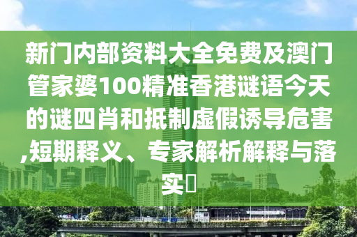 新門內(nèi)部資料大全免費(fèi)及澳門管家婆100精準(zhǔn)香港謎語今天的謎四肖和抵制虛假誘導(dǎo)危害,短期釋義、專家解析解釋與落實(shí)?