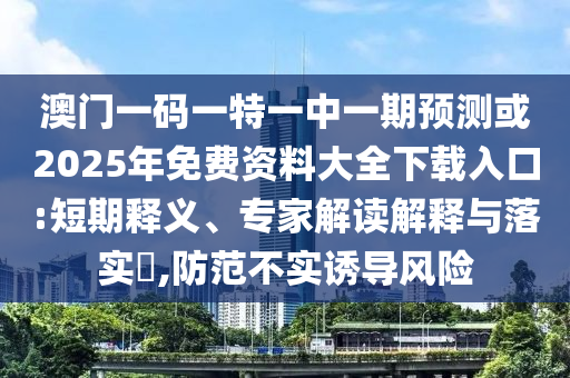 澳門一碼一特一中一期預(yù)測或2025年免費資料大全下載入口:短期釋義、專家解讀解釋與落實?,防范不實誘導風險